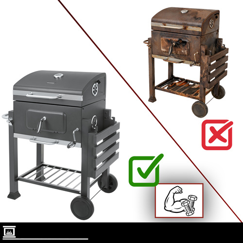 - ✅ Dolna półka pozwala przechować potrzebne rzeczy blisko stanowiska grillowego.