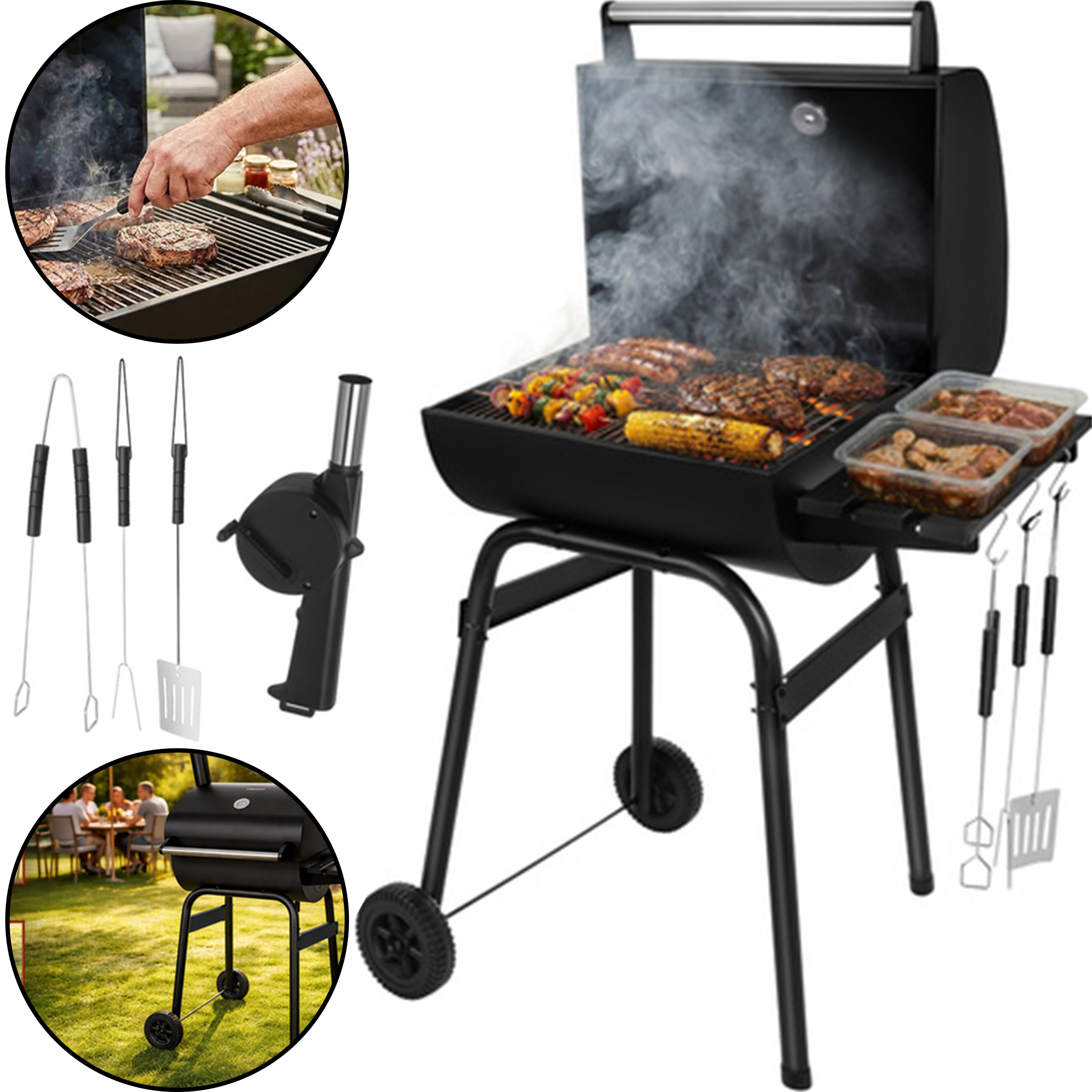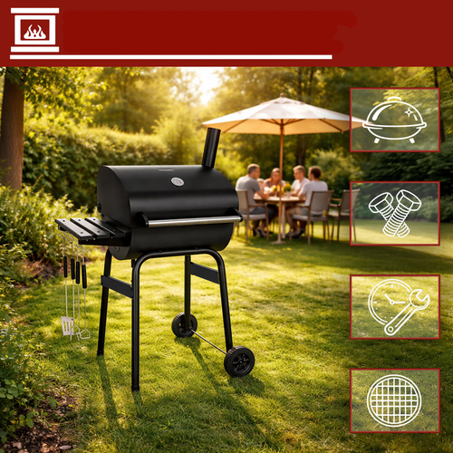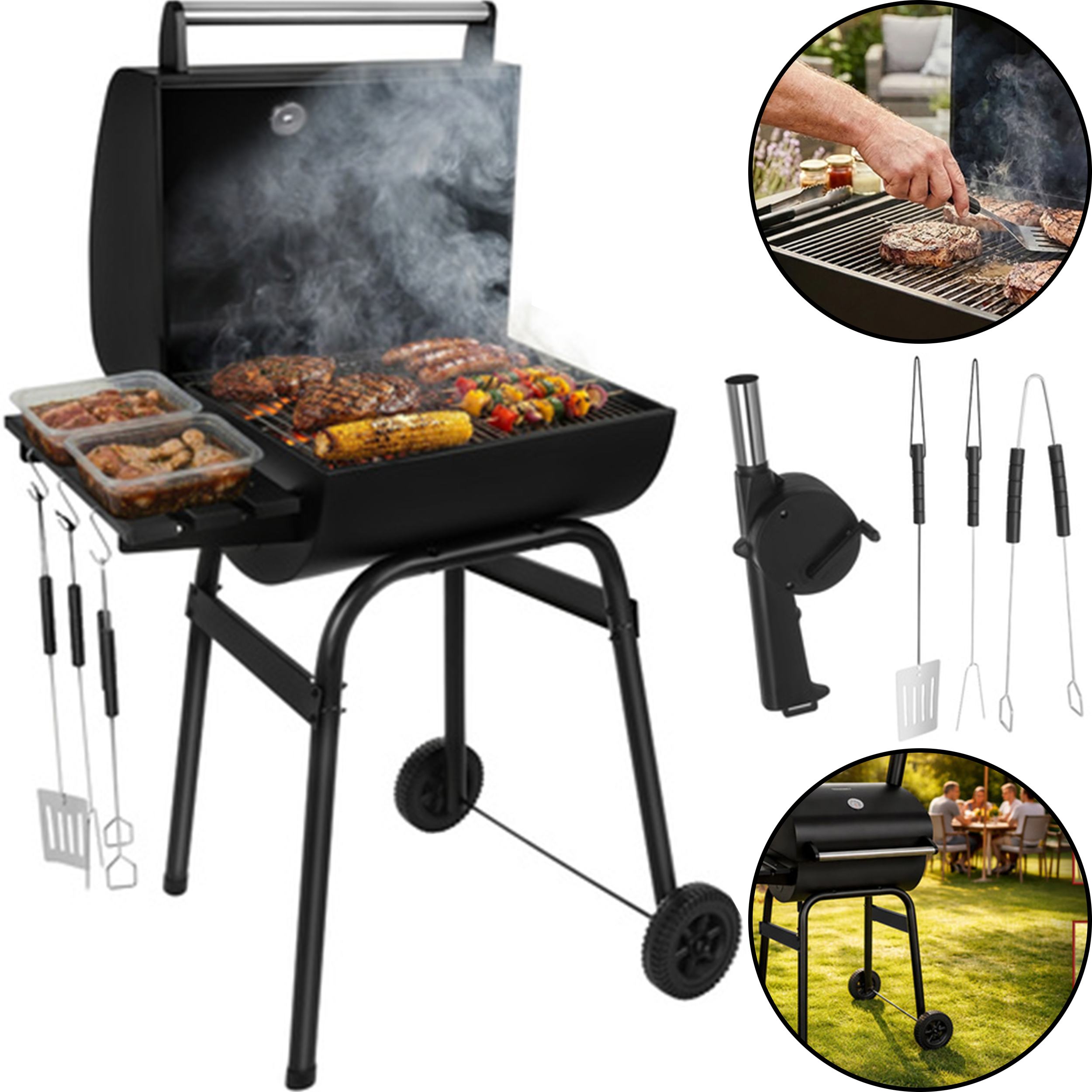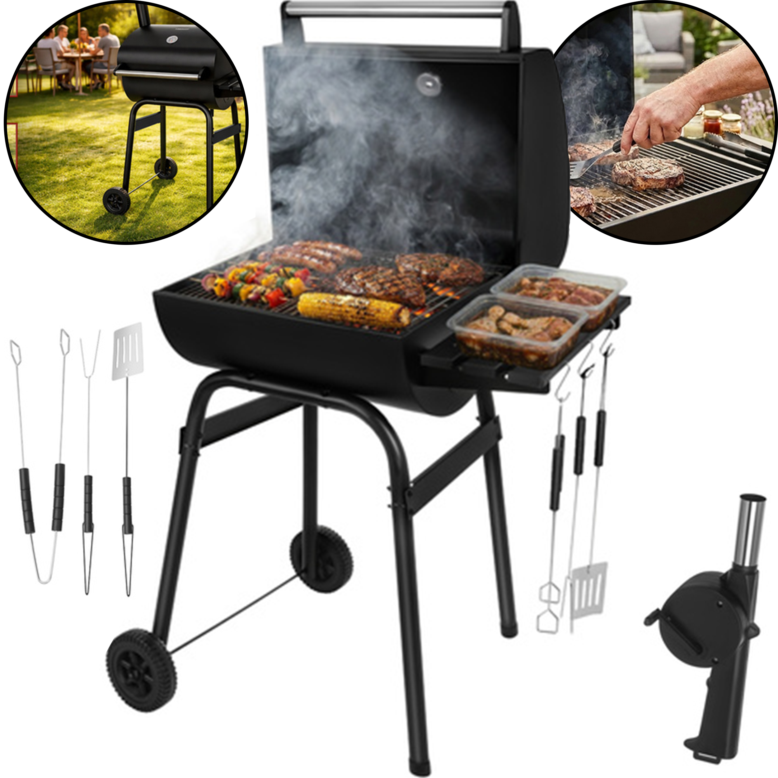 ➡️ Mobilna konstrukcja na kółkach ułatwia ustawienie grilla tam, gdzie jest najwygodniej.