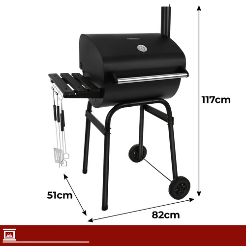 ✅ Wymiary 117 x 82 x 51 cm warto dopasować do miejsca, w którym grill będzie ustawiony.