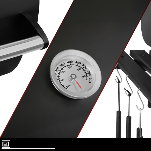 ✅ Wbudowany termometr pozwala na bieżąco sprawdzać temperaturę wewnątrz grilla.