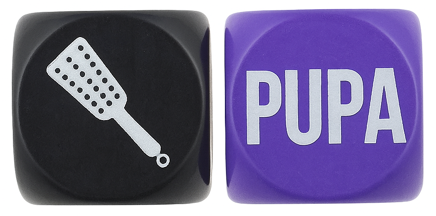 ➡️ Czarna kostka – pokazuje czynność lub przedmiot (np. klaps, pejcz, kajdanki, knebel, opaska na oczy, packa)