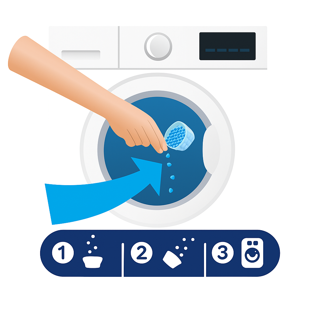 ✅ Dodając perełki bezpośrednio do bębna pralki na początku cyklu prania, zapewnisz, że zapach głęboko wnika w włókna tkanin.