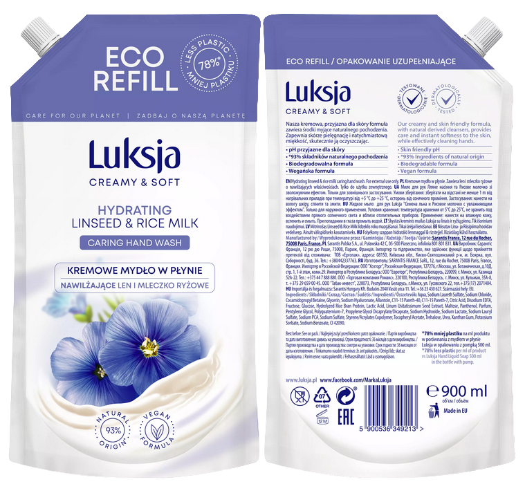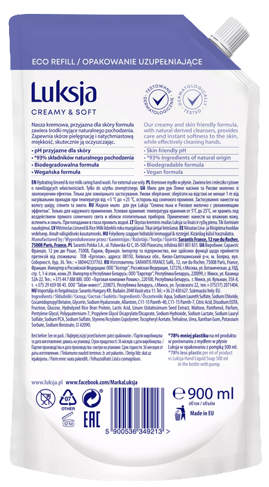 | Model | LUKSJA Kremowe Mydło W Płynie Len i Mleczko Ryżowe 900 ml |