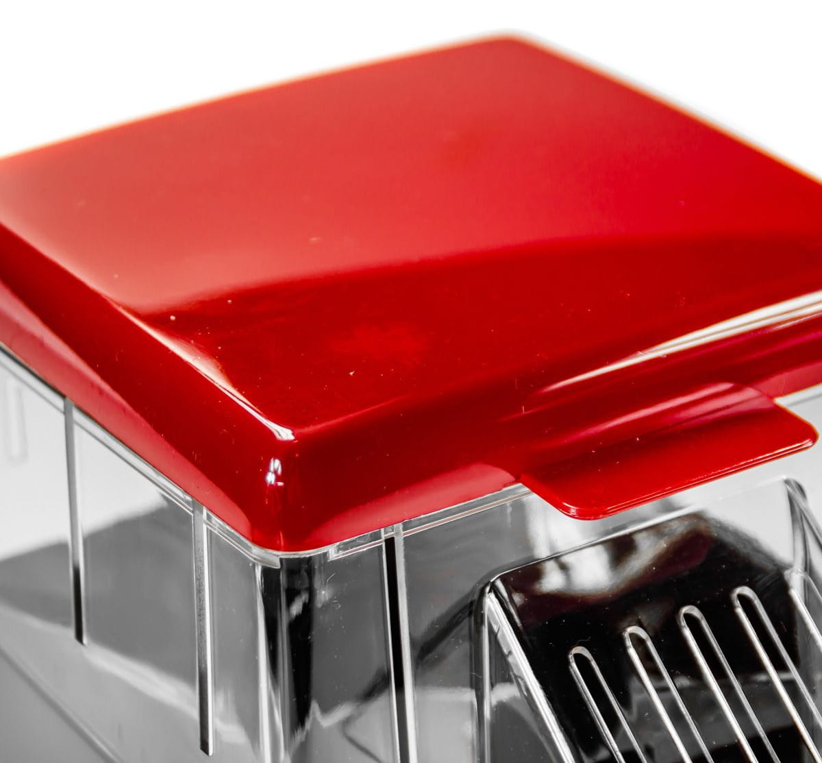 ➡️ Czerwony kolor, przezroczysty korpus i detale w stylu retro czynią z niej nie tylko praktyczne urządzenie, ale i ciekawy element dekoracyjny.