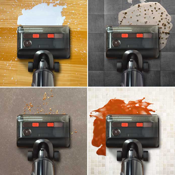 ✅Ciesz się uczuciem świeżo umytych podłóg w o połowę krótszym czasie, dzięki połączeniu wszystkich niezbędnych czynności w jednym ruchu: zamiatania, odkurzania i mopowania.