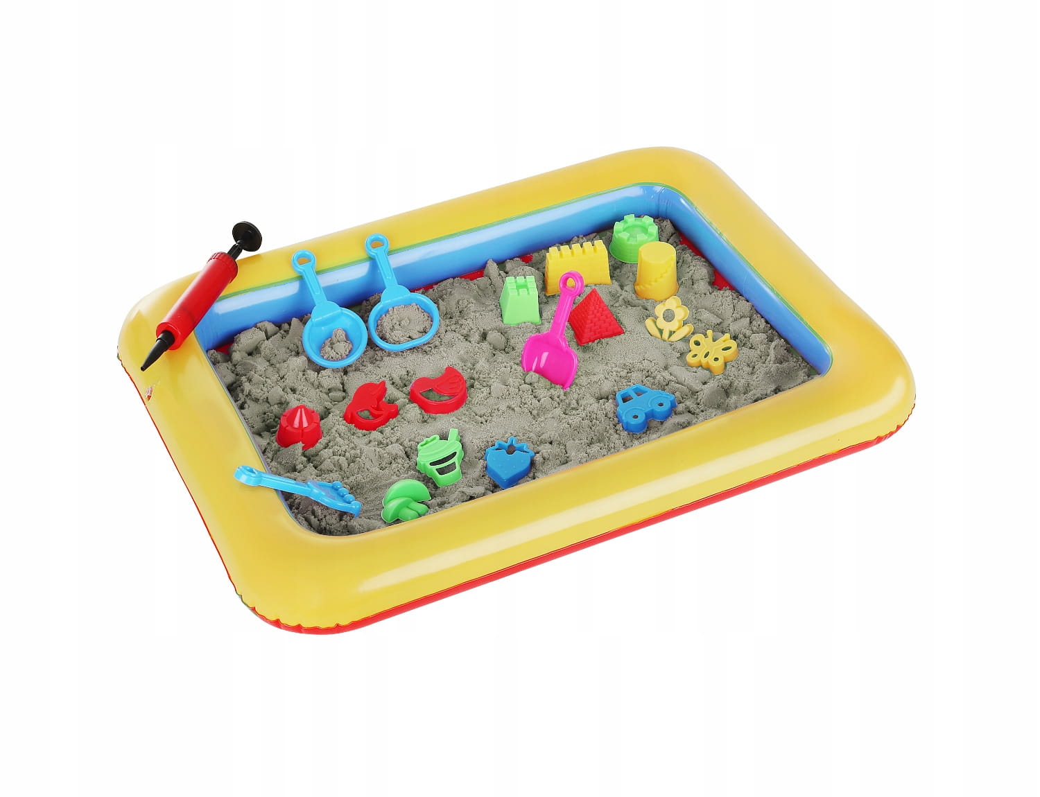 ✅Zestaw piasku dla dzieci zawiera 14 plastikowych foremek, grabki, sito, łopatkę i lejek. Z takimi akcesoriami nie sposób się nudzić. W zestawie z piaskiem kinetycznym jest również dmuchana piaskownica, która pozwoli na utrzymanie porządku w miejscu zabawy.