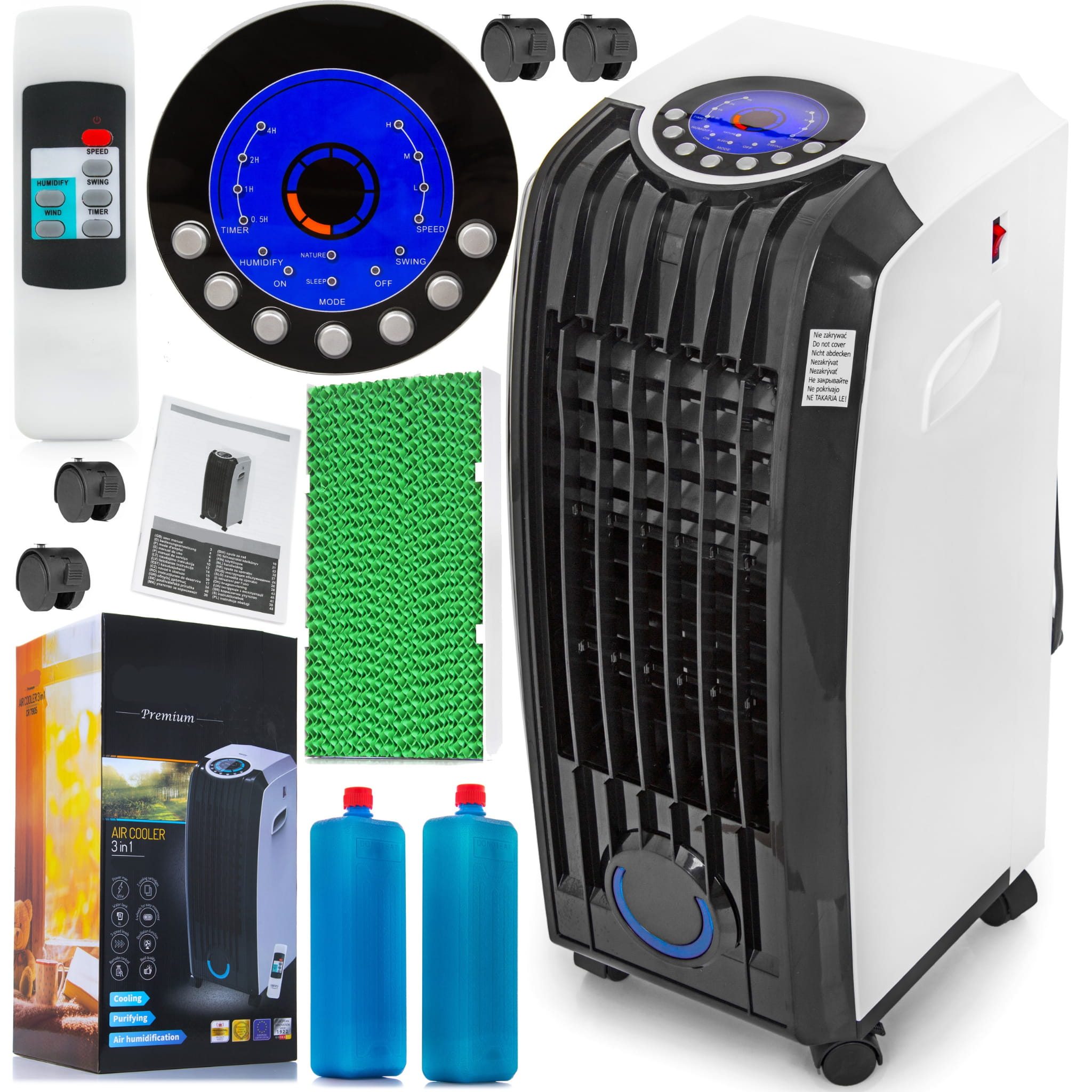 ✅Użytkownik może wybierać z pośród 3 prędkości nawiewu. Klimator ma wbudowany 7L zbiornik na wodę, dzięki dołączonym 2 pojemnikom z żelem, które można zamrozić w lodówce aby potem przełożyć do zbiornika z wodą, urządzenie może wydajnie chłodzić i nawilżać powietrze.