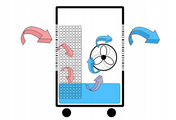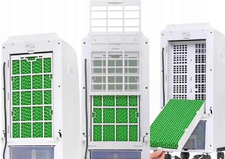 ➡️Chłodzenie za pomocą wody lub lodu bez konieczności odprowadzania powietrza na zewnątrz. Chłodzenie odbywa się za pomocą zbiornika na wodę.