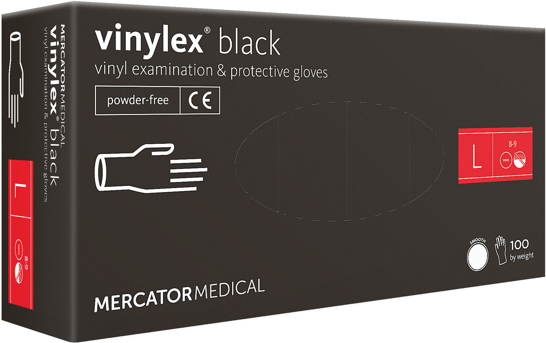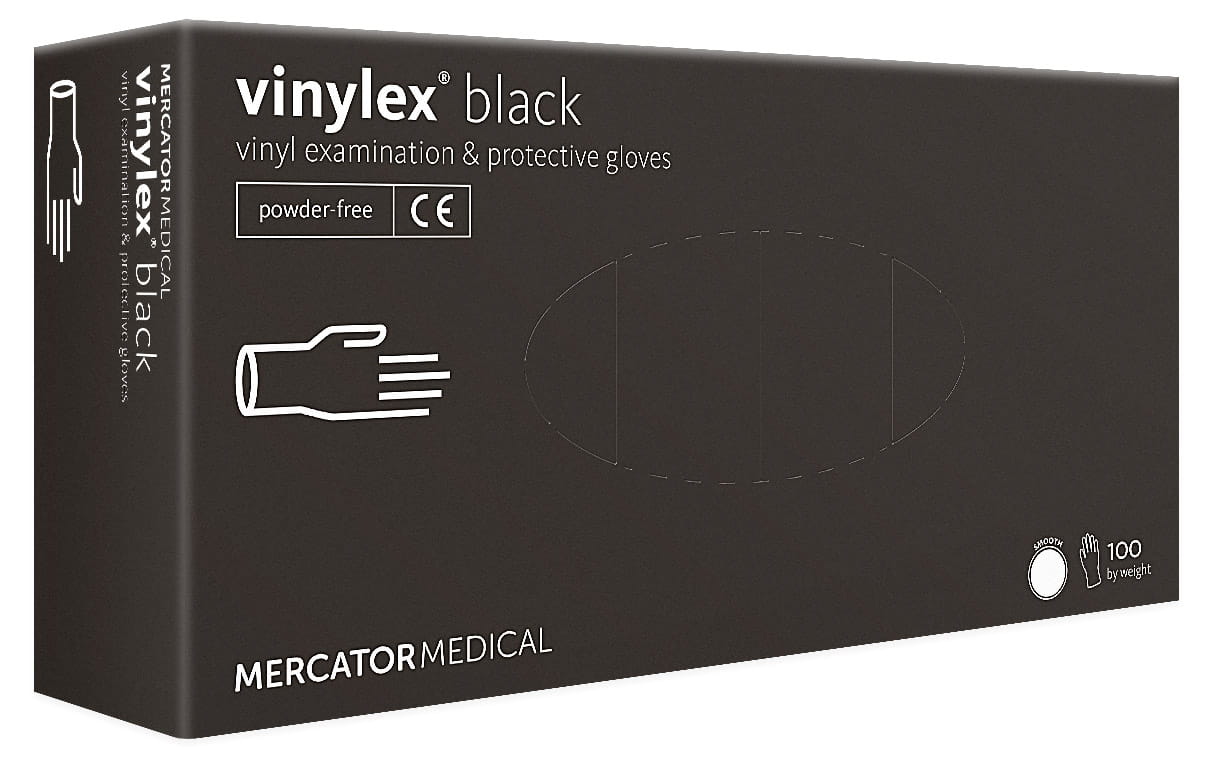 Vinylex® black to diagnostyczne rękawice winylowe w kryjącym czarnym kolorze, odpowiednie do kontaktu z żywnością.