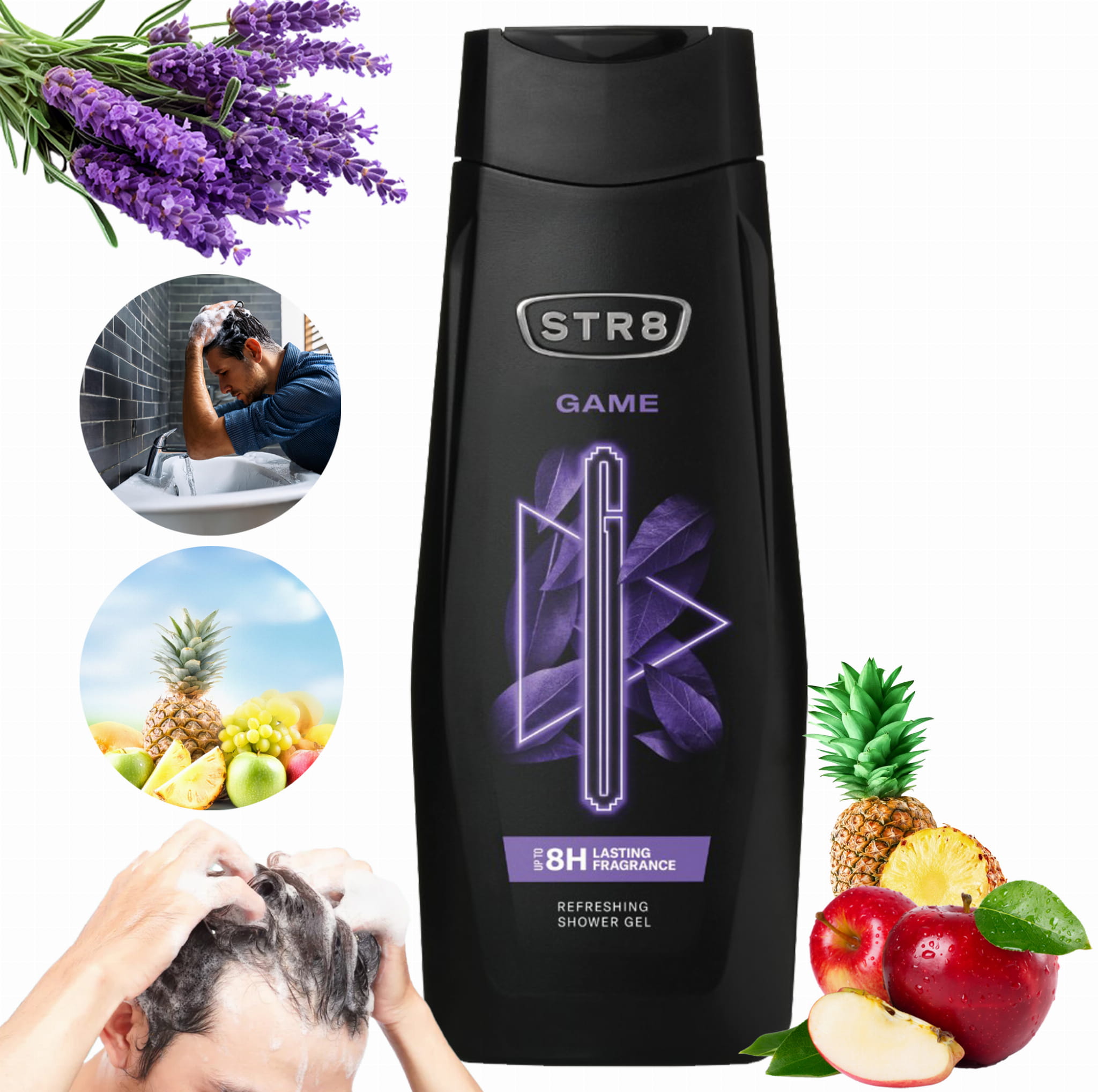 ✅STR8 GAME to męski żel pod prysznic, który łączy w sobie intensywną świeżość owocowych nut z subtelnym, korzennym akcentem, tworząc unikalny, pobudzający zapach.