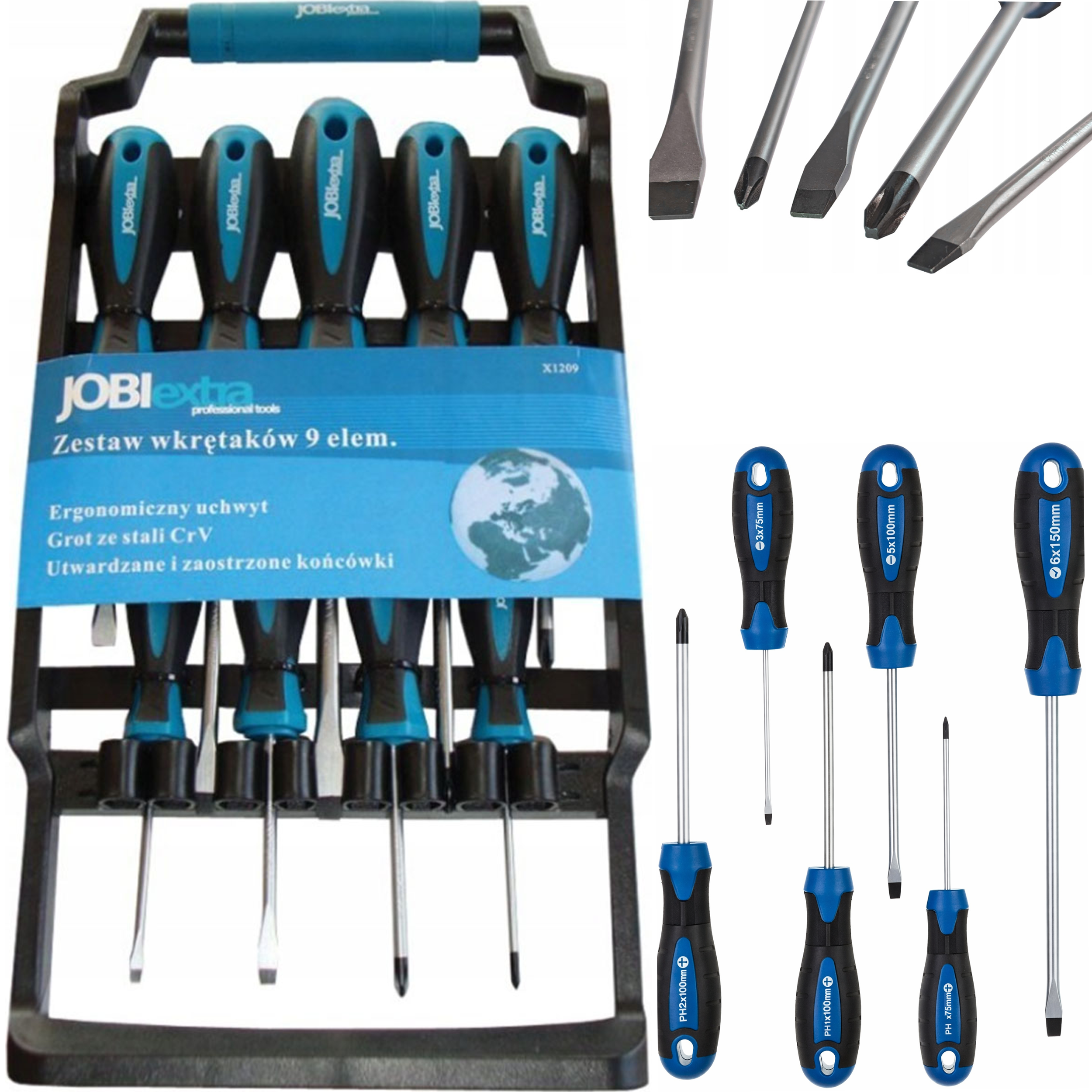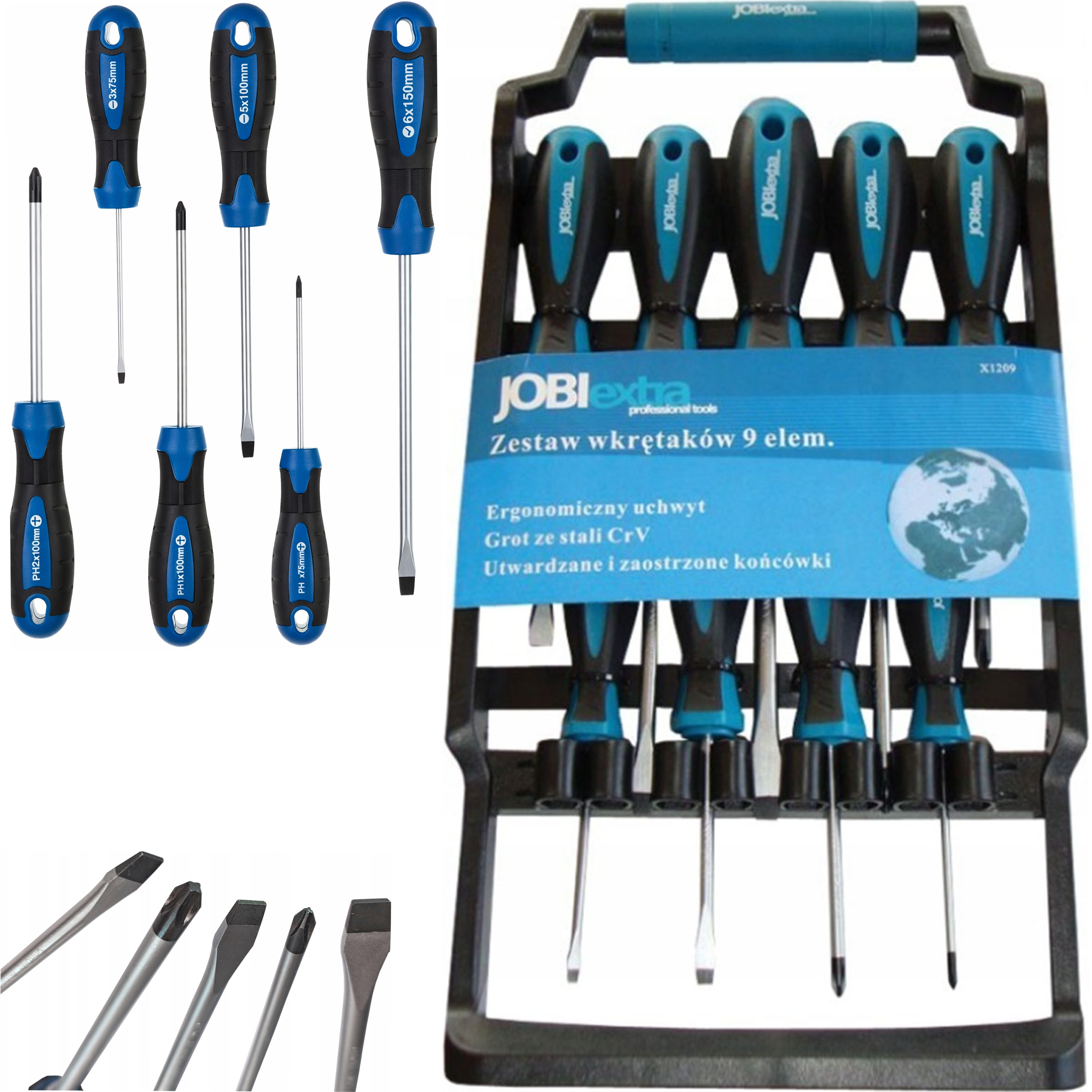 ✅ Śrubokręty Zestaw Wkrętaków Magnetyczne Wieszak Na Ścianę 9 szt Jobi X1209 to praktyczny, wygodny i trwały komplet do codziennych zadań.