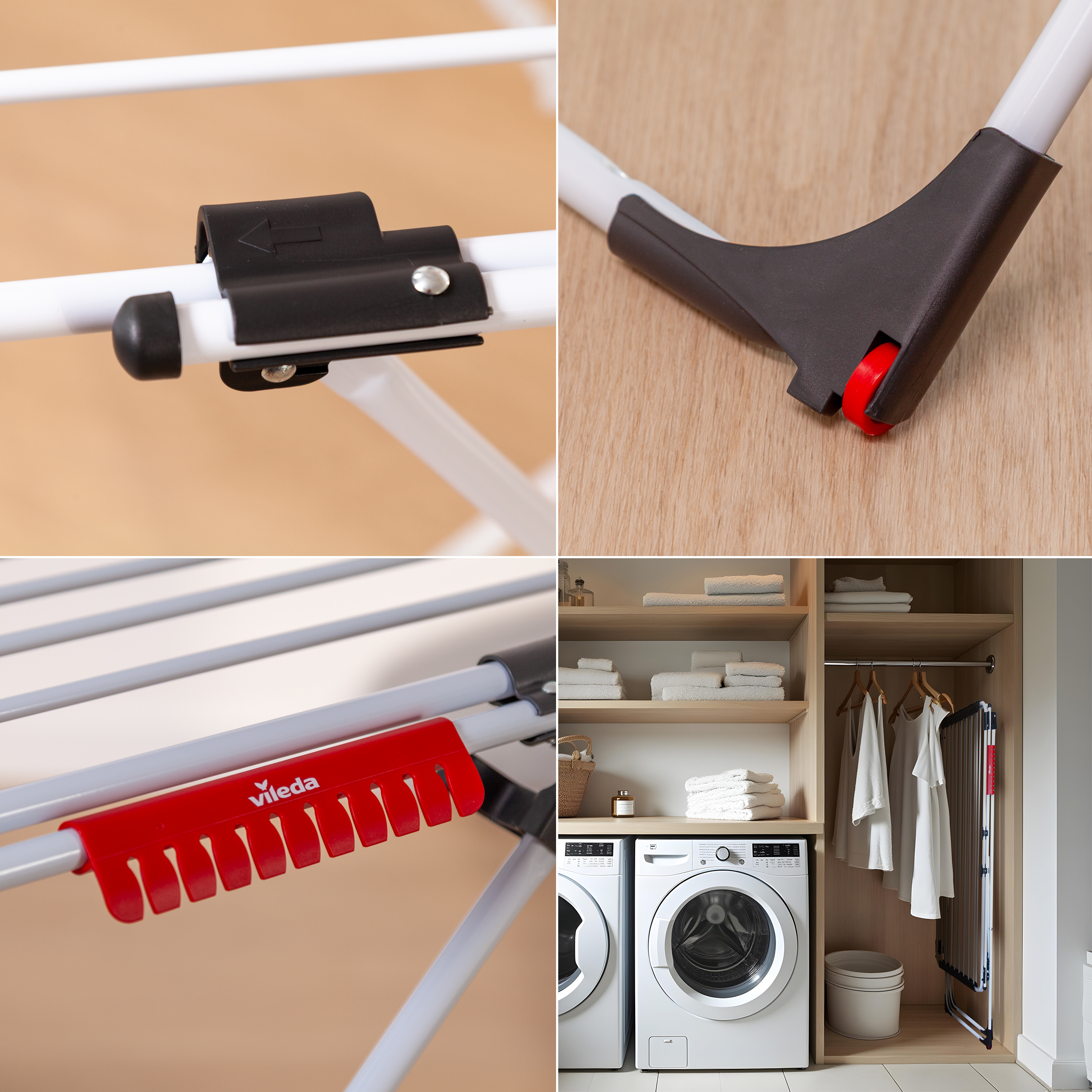 ✅ Dzięki kółkom, suszarkę Vileda Doble bez problemu przesuniesz z miejsca na miejsce, nawet kiedy jest obciążona praniem.