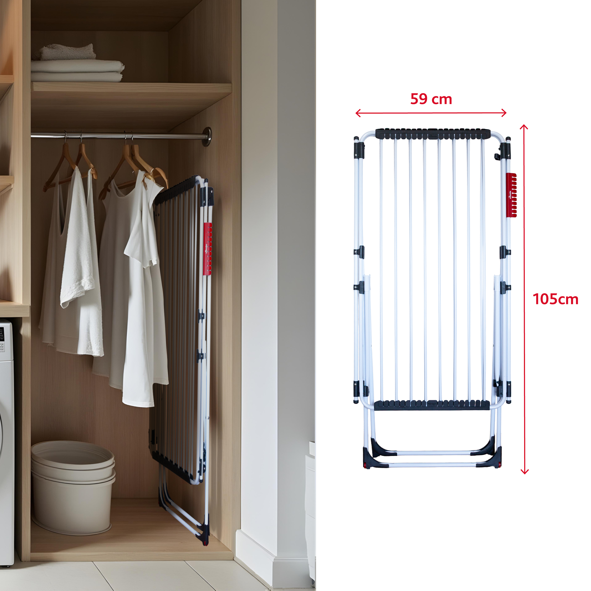 ✅ Rozsuń blaty, aby cieszyć się większą powierzchnią suszenia. Zsuń je, gdy dodatkowa przestrzeń nie będzie już potrzebna.