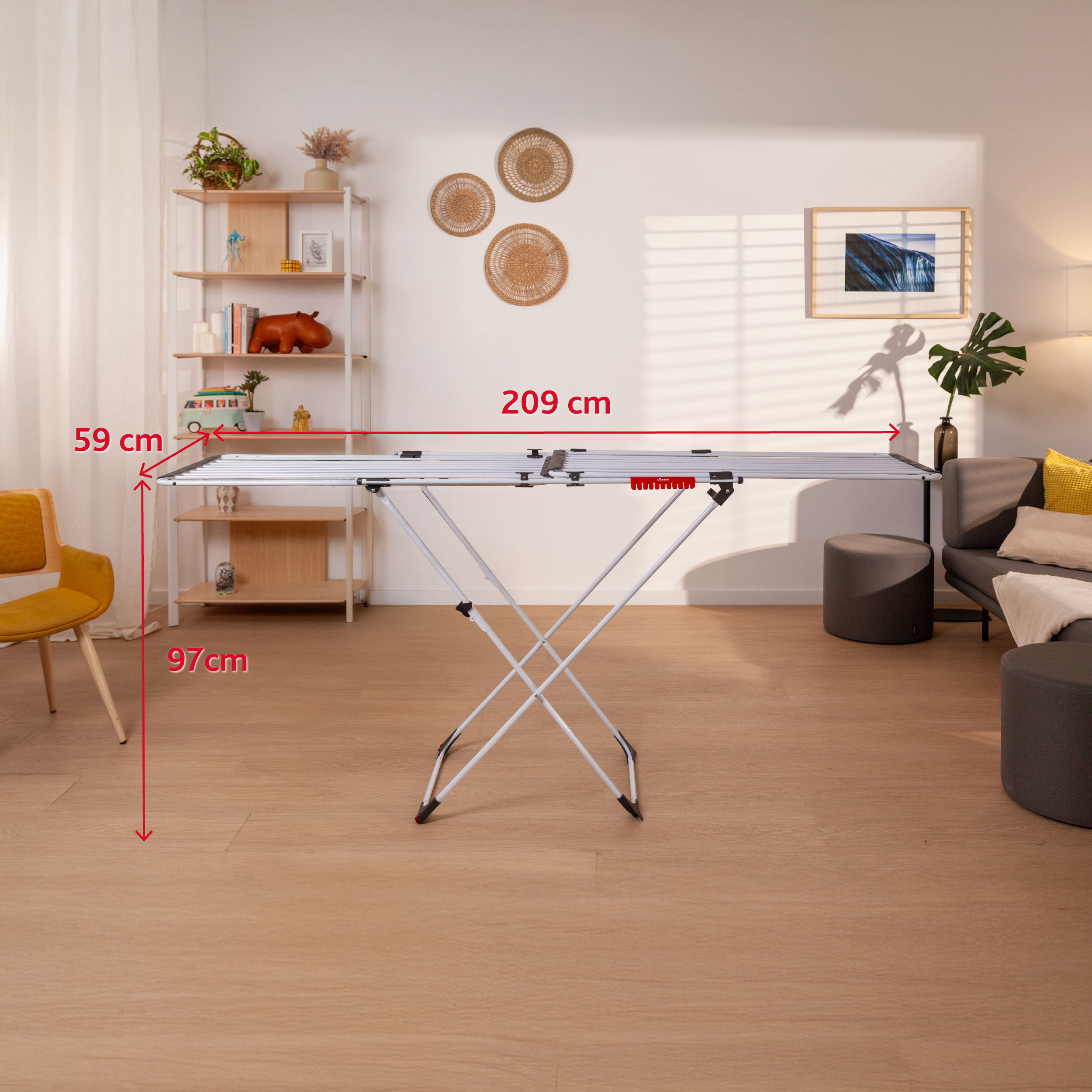 ✅ Dwa niezależne blaty oferują od 105 do 209 cm długości, co daje łącznie 22 m powierzchni suszenia.