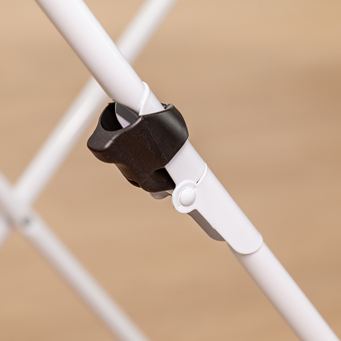 ✅ Blokada zapobiega przypadkowemu złożeniu się suszarki, zapewniając bezpieczeństwo użytkowania.