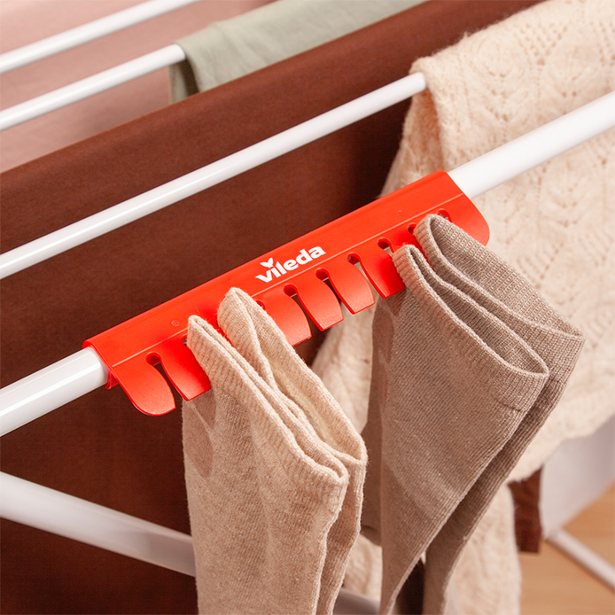 ➡️ Dołączony uchwyt na małe elementy garderoby, takie jak skarpetki, maksymalizuje przestrzeń do suszenia i pomaga utrzymać porządek.