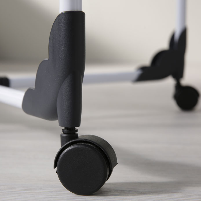 - Wyposażona w 4 obrotowe kółka ułatwiające przesuwanie suszarki gdy jest rozłożona