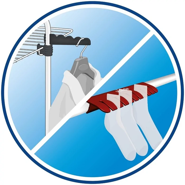 Suszarka stojąca Vileda posiada także dwa uchwyty na wieszaki pozwalające rozwiesić dodatkowe pranie, jak np. koszule. Dodatkowo posiada wieszak na bieliznę i drobne pranie.