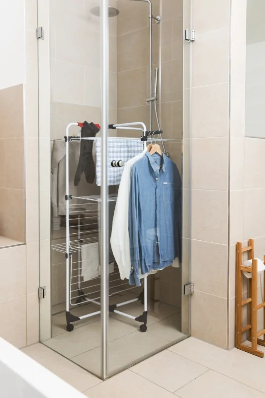 Gdy metraż mieszkania jest niewielki, bardzo pomocne okazują się wysokie, stojące suszarki typu „wieża” jak trzypoziomowa suszarka Mixer 3.