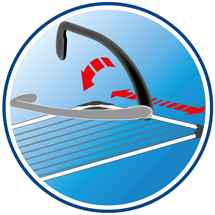 Dzięki super mocnym plastikowym ramionom suszarkę balkonową Sunset można łatwo umieścić w dowolnym miejscu. Solidne wieszaki gwarantują stabilność nawet przy pełnym załadowaniu suszarki.