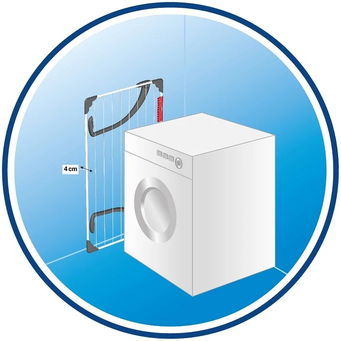 Niewielkie wymiary suszarki do ubrań Vileda po złożeniu umożliwiają przechowywanie suszarki na bieliznę w dowolnej przestrzeni w łazience lub innym pomieszczeniu.