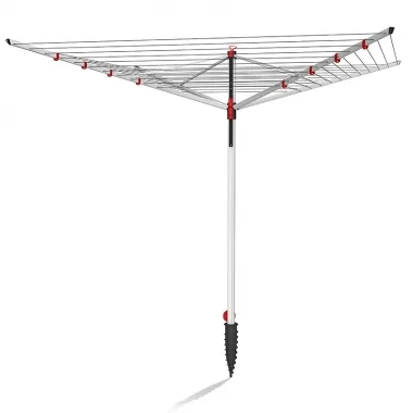 Aluminiowa konstrukcja sprawia, że zewnętrzna suszarka obrotowa Sun Lift Plus 60 nie rdzewieje dzięki czemu jest bardziej trwała a pokrowiec w zestawie zapewnia dodatkową ochronę przed promieniami UV.