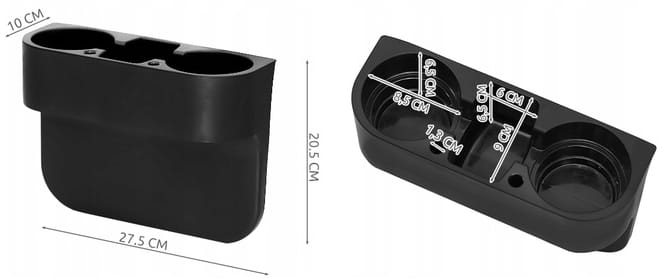 ➡️Na środku uchwytu na napoje do samochodu znajduje się jedna komora prostokątna na drobne przedmioty – można wrzucić do niej drobniaki lub klucze.